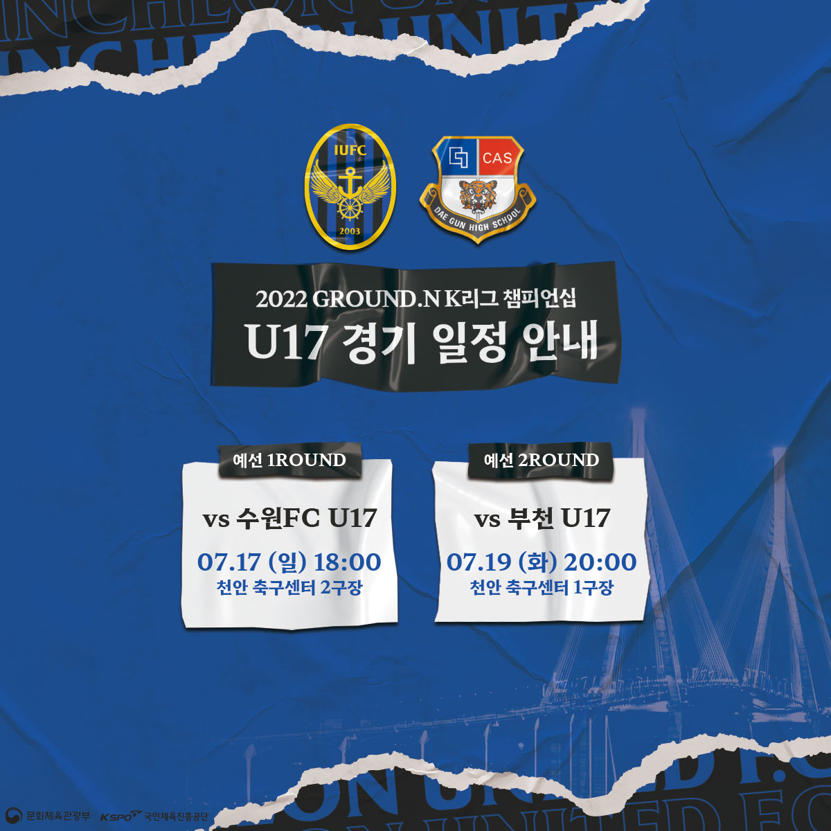 구단 산하 유소년 선수들에게 응원의 박수를 부탁드립니다!2022 Ground.N K리그 유스 챔피언십 U-18, 17 일정 안내