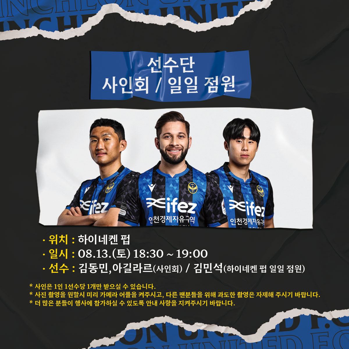 선수단 사인회 및 하이네켄펍 일일 점원 안내