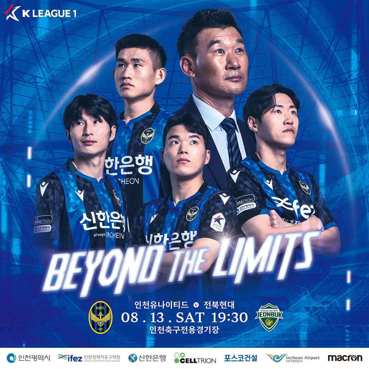 “더 높은 곳으로, 한계를 뛰어넘어!”※ 홍보 문자로 안내드린 '스포일러 데이'는 우천 예보로 연기되었음을 알려드립니다. 팬 여러분의 너른 양해 부탁드립니다.8/13(토) 오후 7시 30분. 인천유나이티드가 전북현대를 상대로 2022시즌 K리그 1 28라운드 홈경기를 치릅니다.