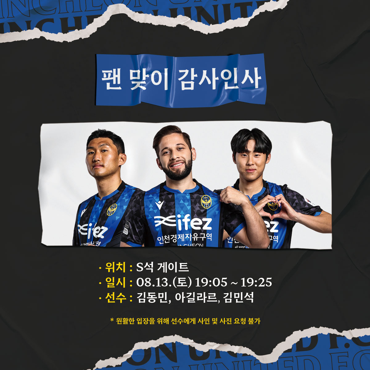 경기장에 일찍 오셔서 사인도 받으시고, 선수들에게 많은 응원도 보내주세요!