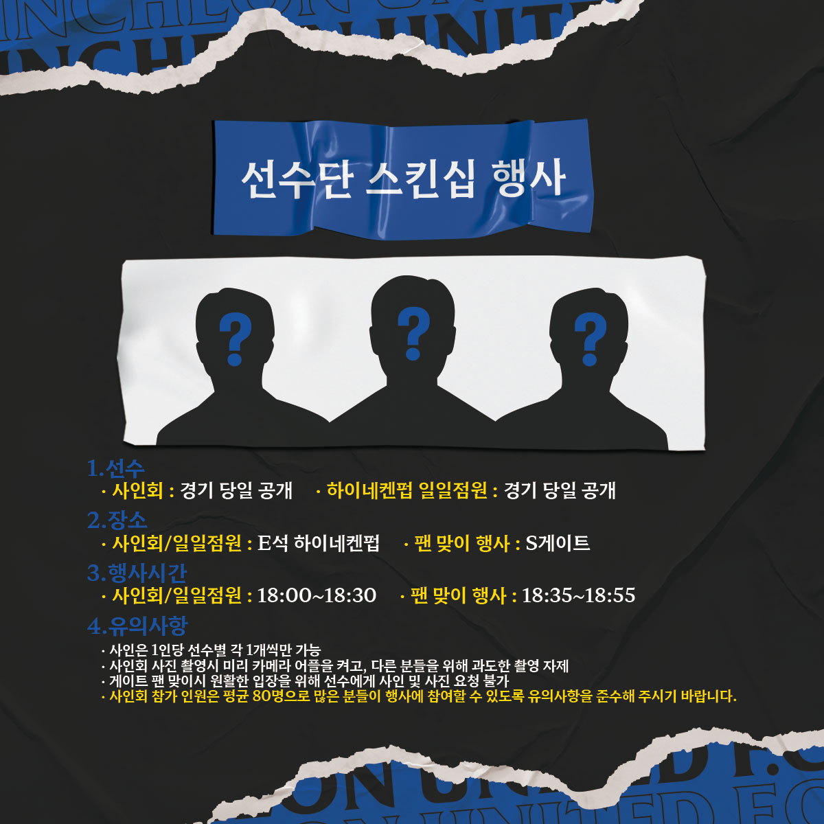 - 선수단 스킨십 행사(사인회/일일점원/S석 인사)