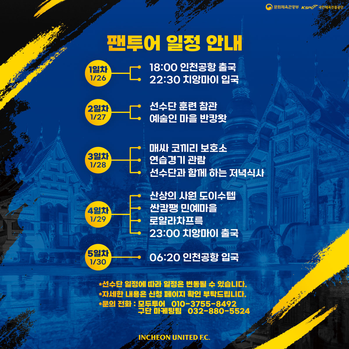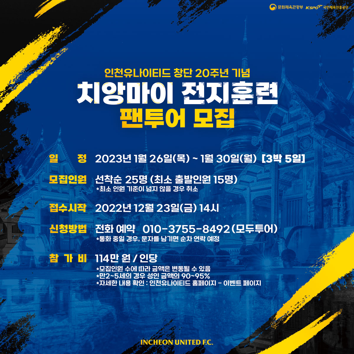 인천유나이티드 프로축구단 창단 20주년 기념 태국 치앙마이 전지훈련 팬투어 참가자를 모집합니다!