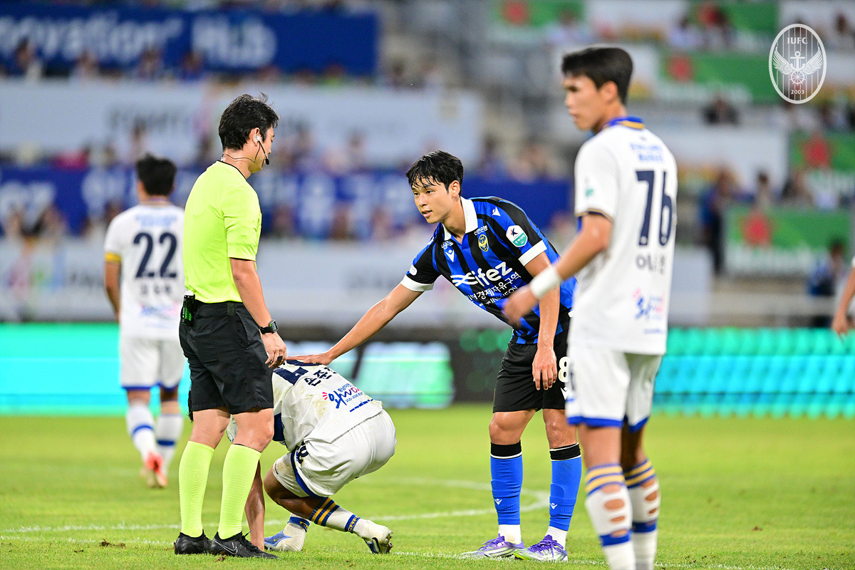 윤정환 감독이 이끄는 인천유나이티드는 지난 8월 30일 오후 7시 인천축구전용경기장에서 열린 ‘하나은행 K리그2 2025’ 27라운드 충남아산FC와의 홈 경기에서 1-1 무승부를 거뒀다.홈팀 인천은 4-4-2 포메이션을 선택했다. 민성준 골키퍼가 골문을 지키고, 김명순-김건희-김건웅-이주용이 수비진을 구축했다. 중원에는 정원진, 이명주가 나섰고, 양 측면에는 제르소와 백민규가 나왔다. 최전방 공격진은 박호민-박승호가 기용됐다.