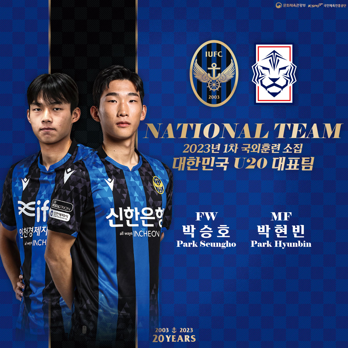 구단 소속 박승호, 박현빈 선수가 AFC U20 아시안컵 우즈베키스탄 2023 대회 대비 2023년 대한민국 U20 국가대표팀의 국외 훈련 소집 명단에 이름을 올렸습니다.