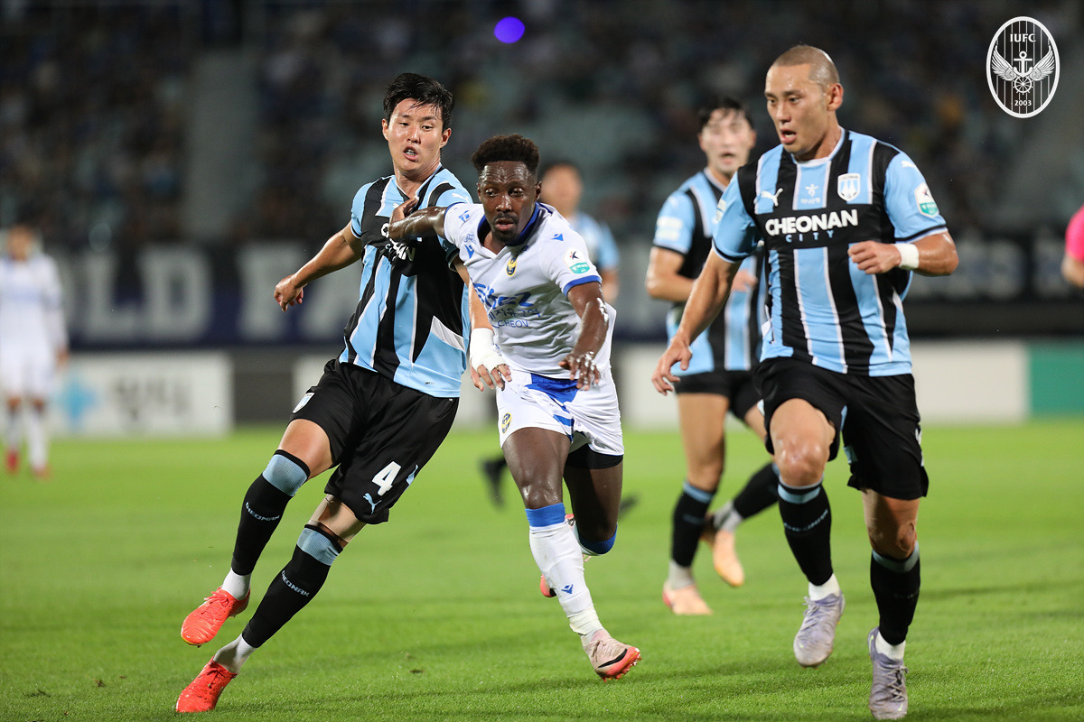 윤정환 감독이 이끄는 인천유나이티드는 지난 13일 천안종합운동장에서 펼쳐진 ‘하나은행 K리그2 2025’ 29라운드 천안시티FC와의 원정 경기에서 4-3으로 승리했다.원정팀 인천은 4-4-2 포메이션으로 선발 라인업을 꾸렸다. 민성준이 골문을 지켰고, 이주용-김건웅-김건희-김명순이 수비진을 구축했다. 중원에서는 바로우-정원진-이명주-제르소가 호흡을 맞췄고, 전방에는 신진호와 박호민이 나섰다.