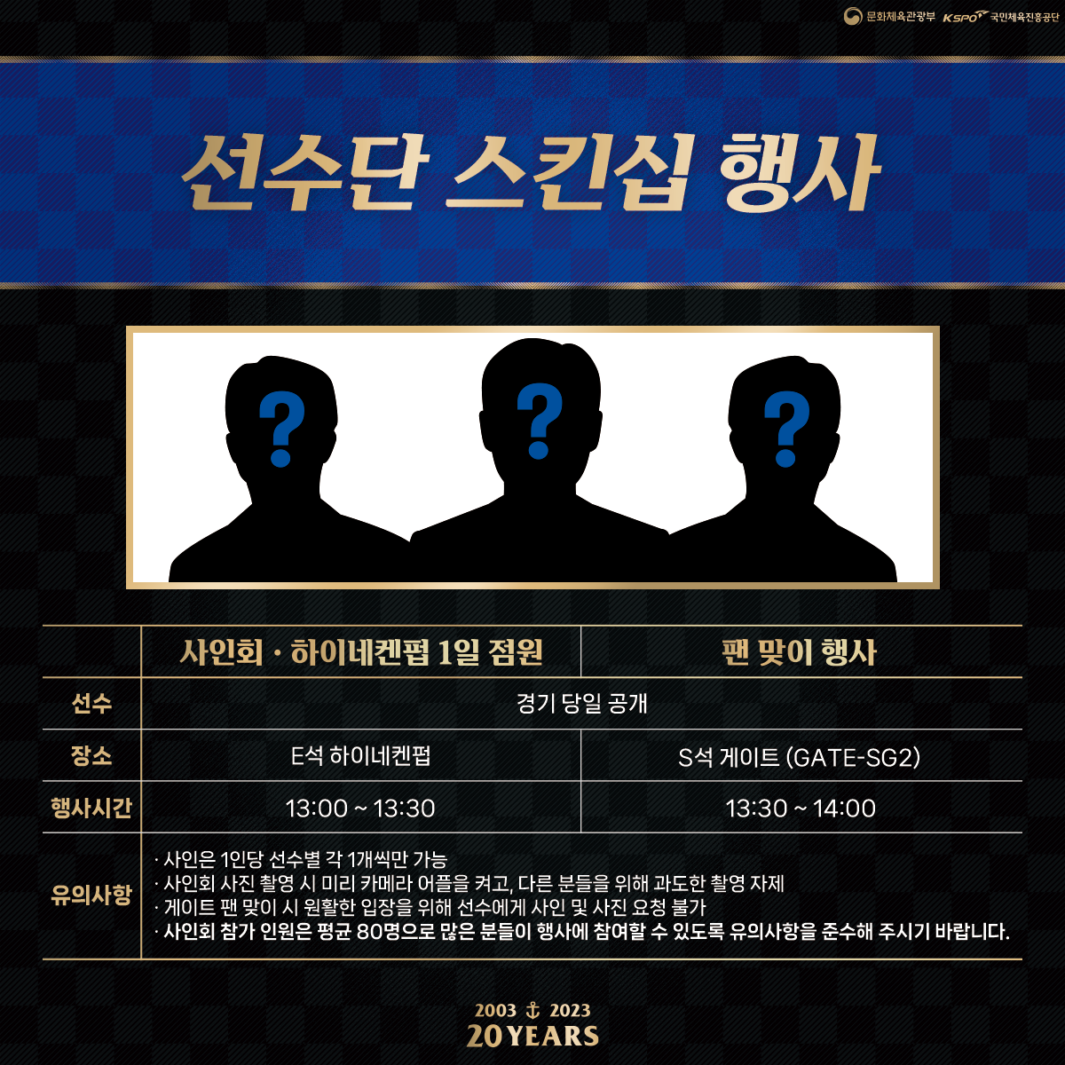2023시즌 창단 20주년을 기념하여 푸짐한 경품을 추첨하여 드릴 예정입니다.
