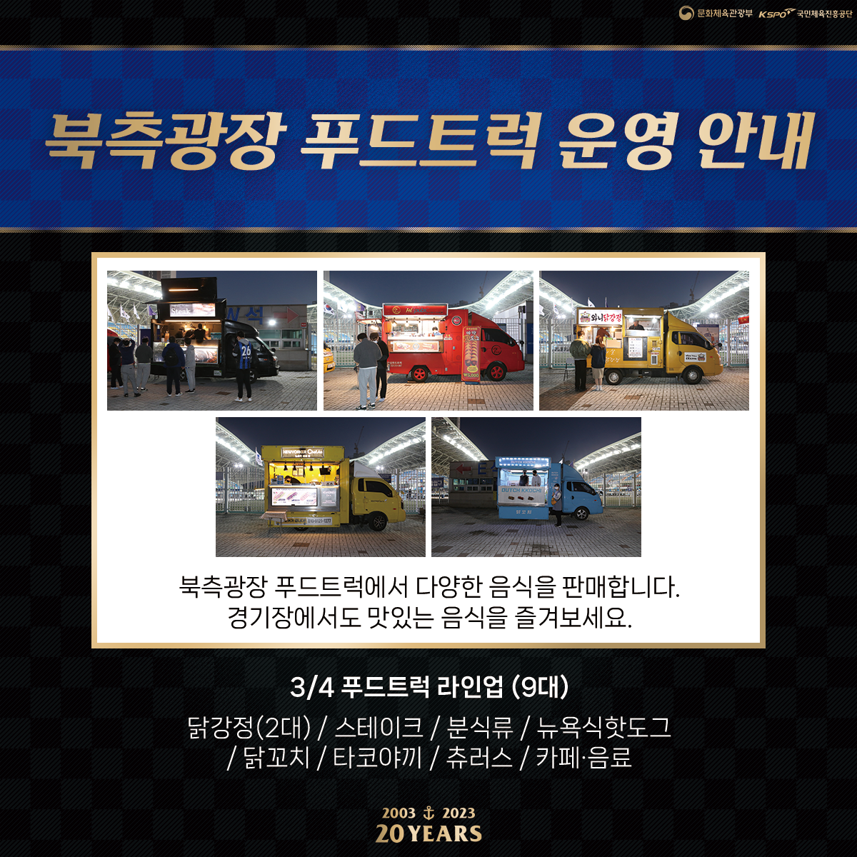 - 운영시간 : 경기 시작 2시간 30분 전 ~ 경기 종료 후 30분