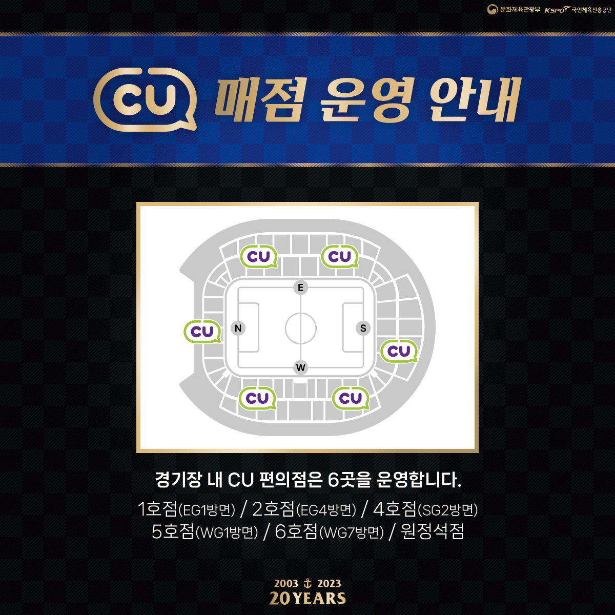 경기장 내 CU 편의점은 6곳을 운영합니다. 자세한 사항은 이미지를 참고해주세요.
