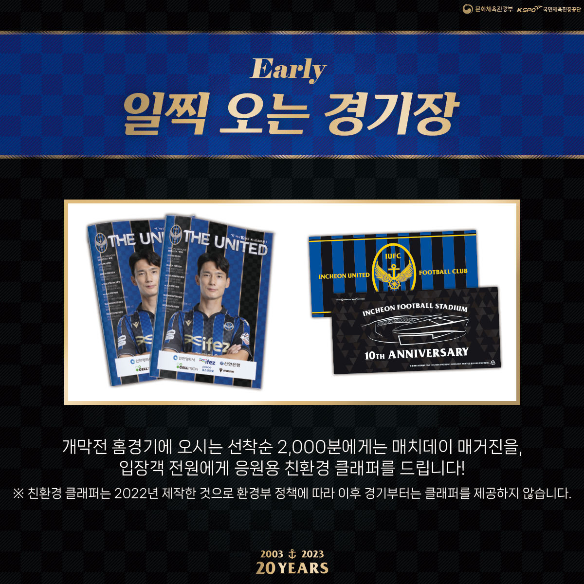 구단 창단 20주년 첫 홈경기날, 인천축구전용경기장에 찾아오셔서 인천의 승리를 다 함께 응원해주세요.