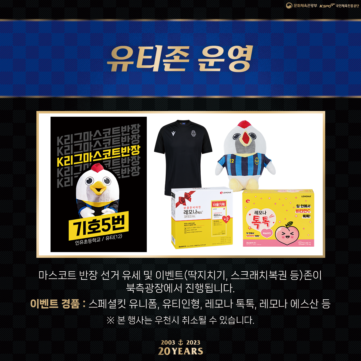 2023시즌 마스코트 반장선거에 출마해 유세 중인 구단 공식 마스코트 귀염둥이 유티가 5월 5일 어린이날을 맞아 북측광장에 유티존을 운영할 예정입니다.