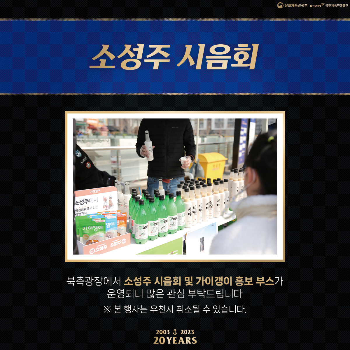 북측광장에서 어른이들을 위해 구단 스폰서 소성주의 시음회 및 가이갱이 홍보 부스도 운영됩니다.