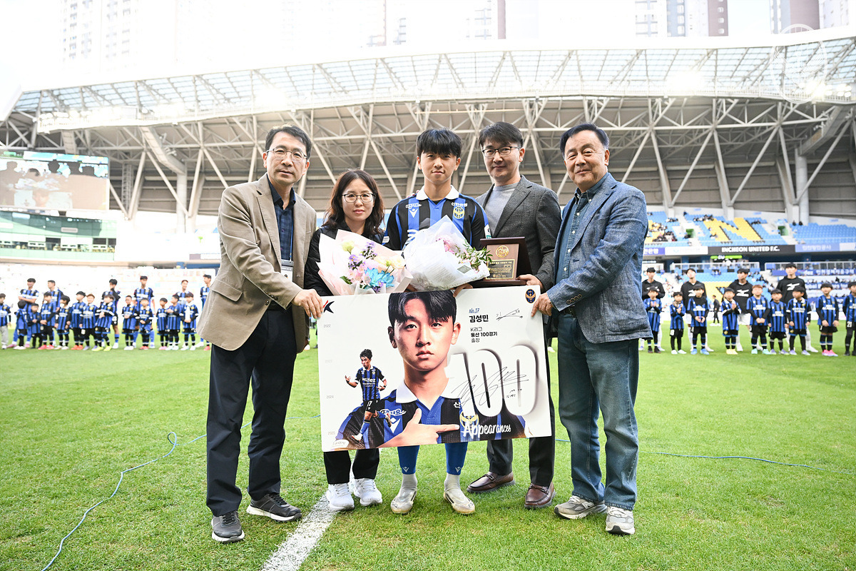 [UTD기자단=인천] 인천의 측면을 책임지는 김성민이 K리그 100경기 출전을 달성했다. 경기 전부터 기념패를 받으며 기록을 기념하게 된 김성민은 이제 다른 목표를 향해 시선을 움직이고 있었다.