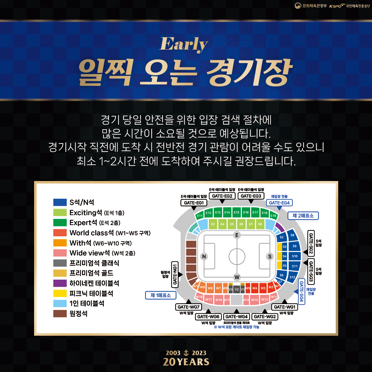 ※ 경기 당일 안전을 위한 입장 검색 절차에 많은 시간이 소요될 것으로 예상됩니다.