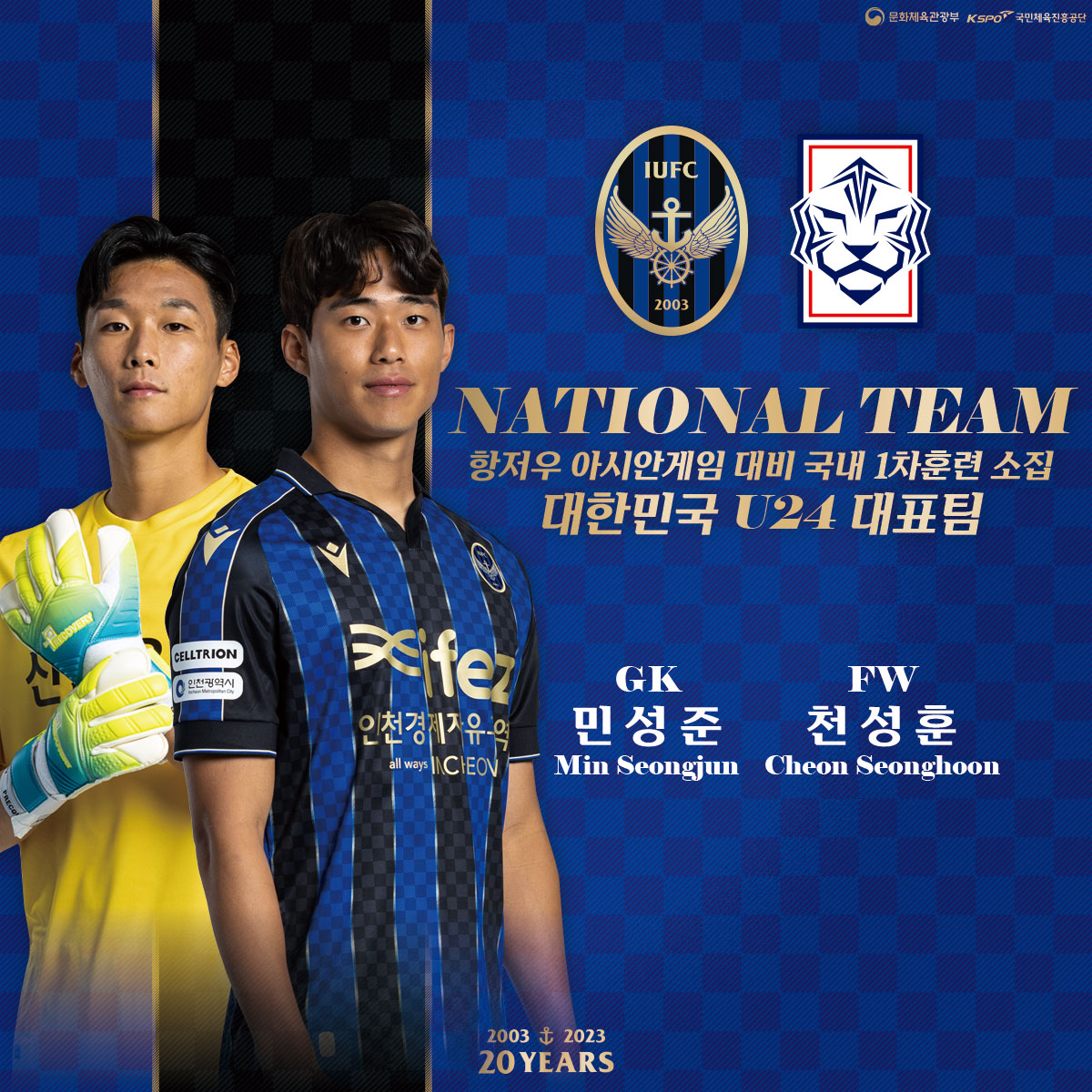 구단 소속 민성준, 천성훈 선수가 항저우 아시안게임 대비 대한민국 U-24 대표팀 1차 국내훈련 소집 명단에 차출됐습니다.