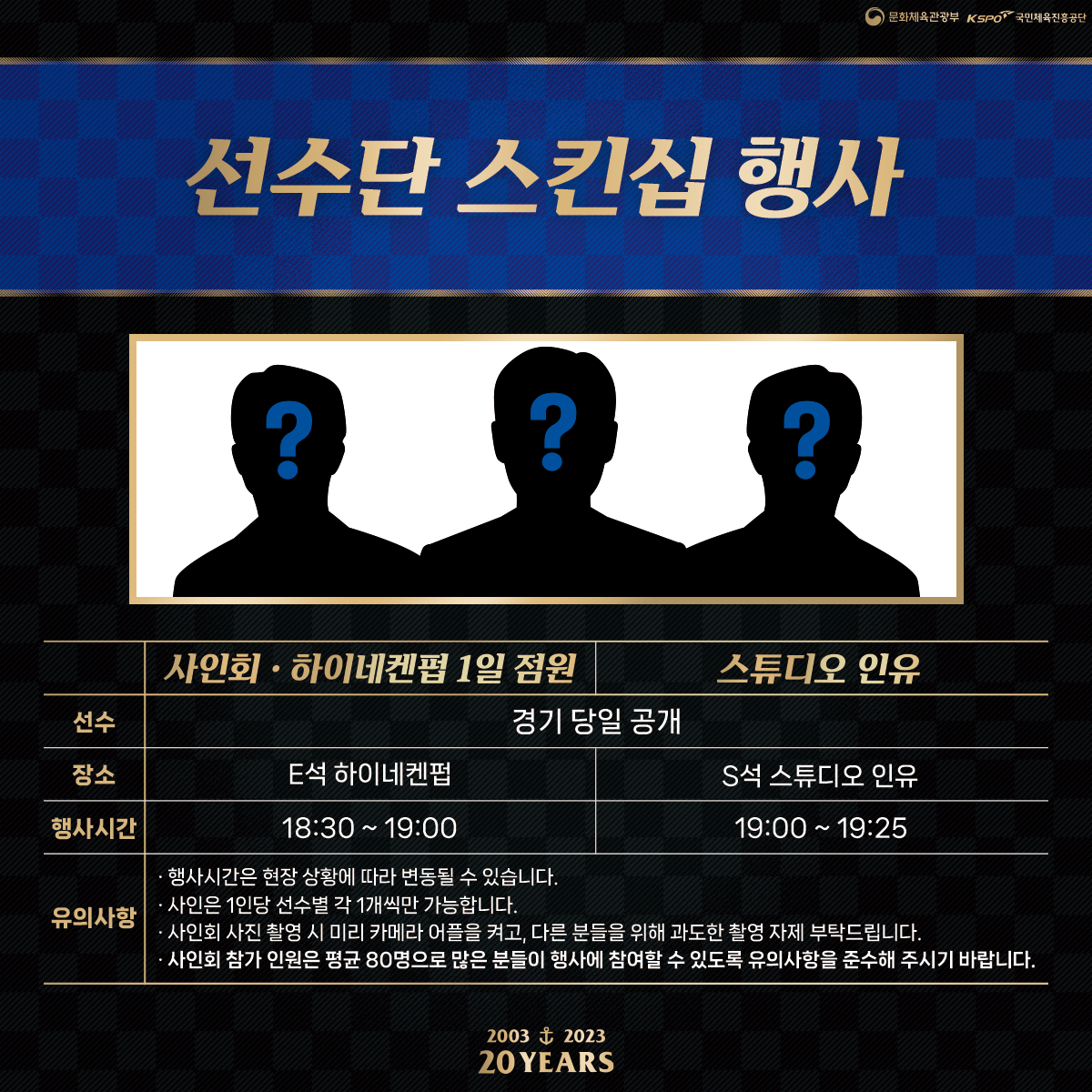 ※ 스킨십 행사에 참여하는 선수단 명단은 경기 2시간 전에 공개될 예정입니다.