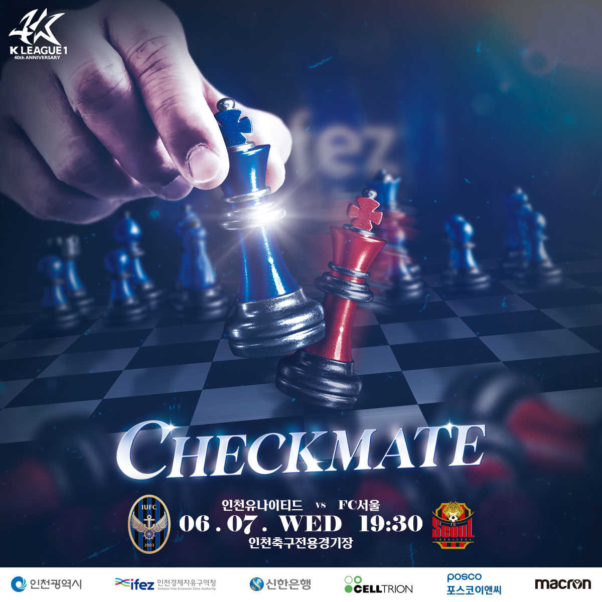 "CHECKMATE"6/7(수) 저녁 7시 30분. 인천유나이티드가 서울을 상대로 시즌 첫 연승에 도전합니다.