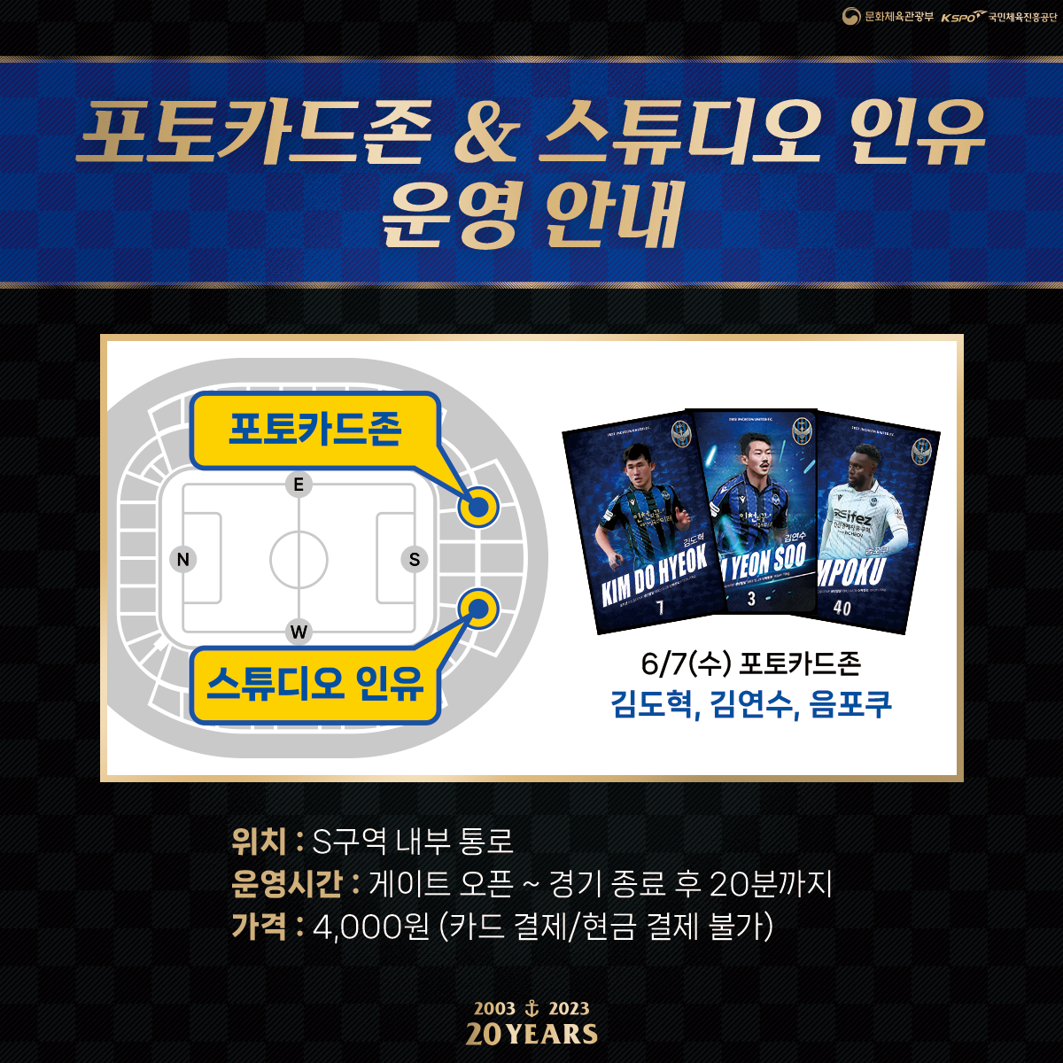 S석 통로에 설치된 포토카드존에서 '김도혁, 김연수, 음포쿠 선수'의 포토카드를 뽑아보세요!