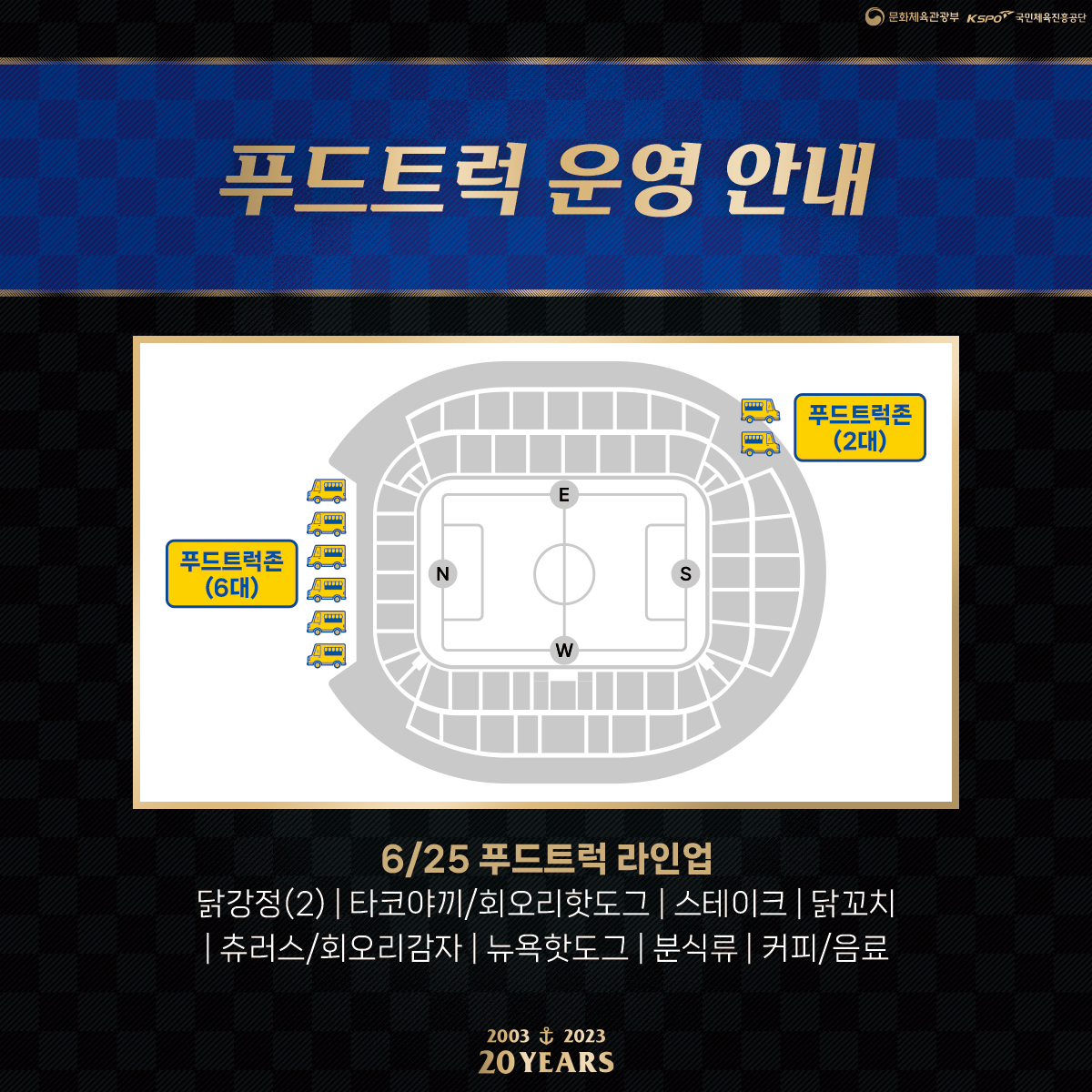 북측광장과 S석 게이트 옆 푸드트럭에서 다양한 음식을 판매합니다. 경기장에서도 맛있는 음식을 즐겨보세요!