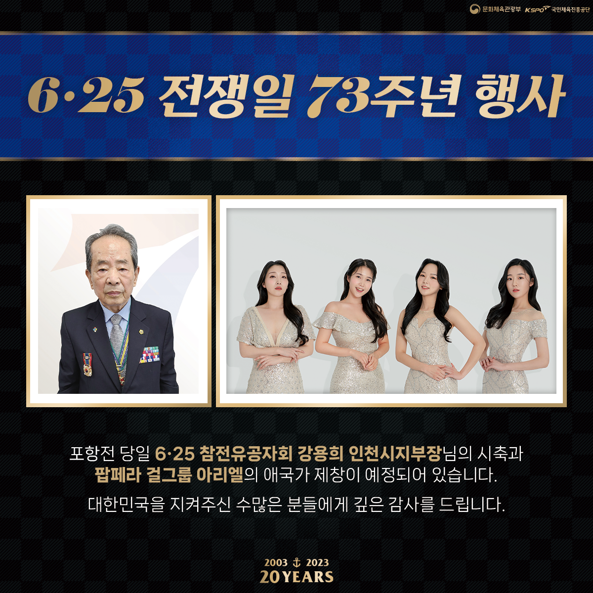 또한, 6월 호국보훈의 달 및 국가보훈부 승격을 기념하여 경기 전 애국가 제창 및 태극기 주장 완장 착용이 진행되며, 특히 팝페라 그룹 아리엘이 애국가 제창을 진행할 예정입니다.