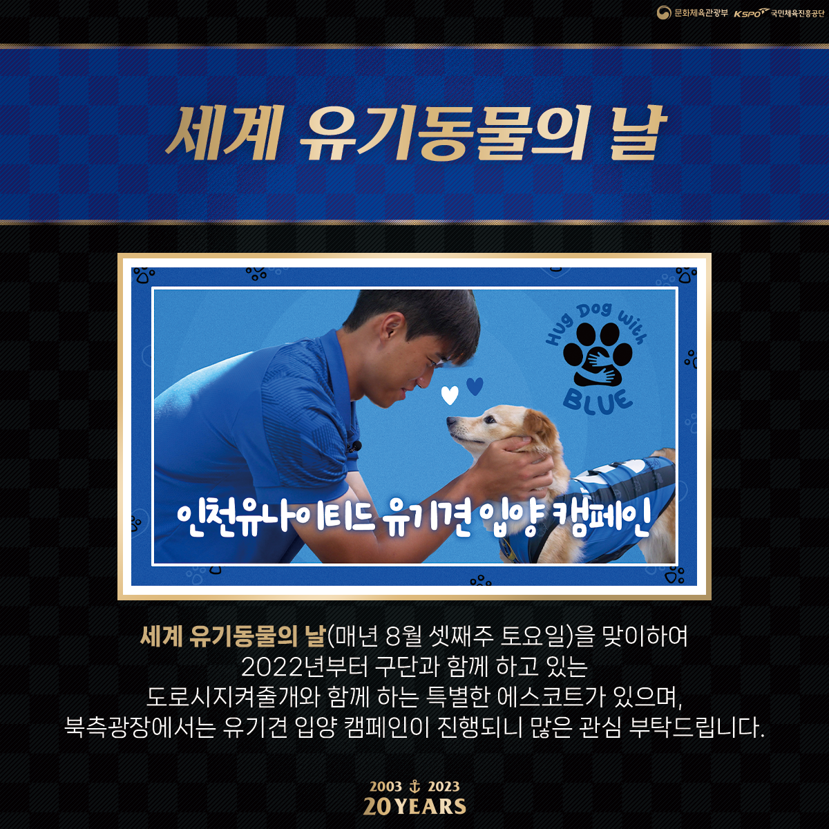 또한, 특별한 하루를 기념해 북측광장에서는 유기견 입양 캠페인이 진행됩니다. 인천 시민, 그리고 팬 여러분의 많은 관심을 부탁드립니다.