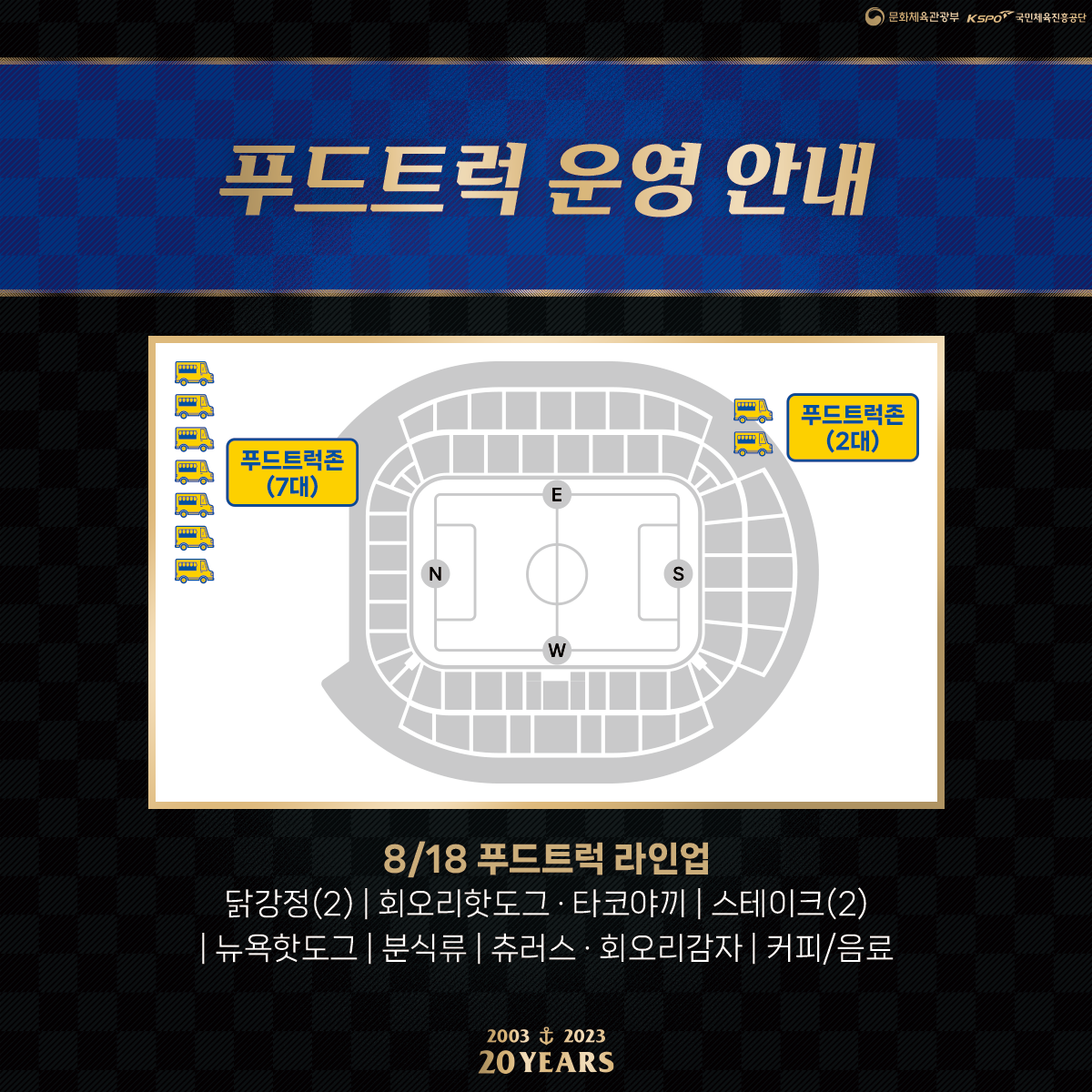 북측광장과 S석 게이트 옆 푸드트럭에서 다양한 음식을 판매합니다. 경기장에서도 맛있는 음식을 즐겨보세요!