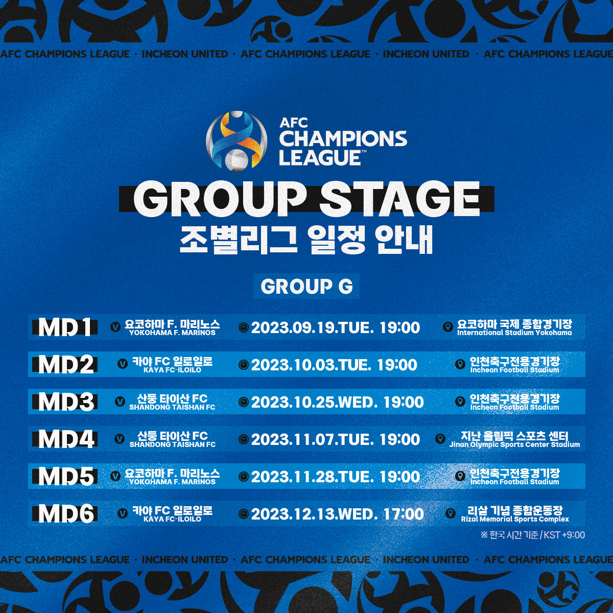 아시아 무대로 진출하는 인천유나이티드의 AFC 챔피언스리그 2023-24 조별리그 일정을 공개합니다✈️