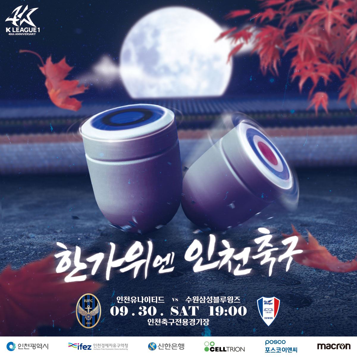 "한가위엔 인천 축구"9/30(토) 오후 7시. 인천유나이티드가 수원삼성을 상대로 승리를 노립니다.