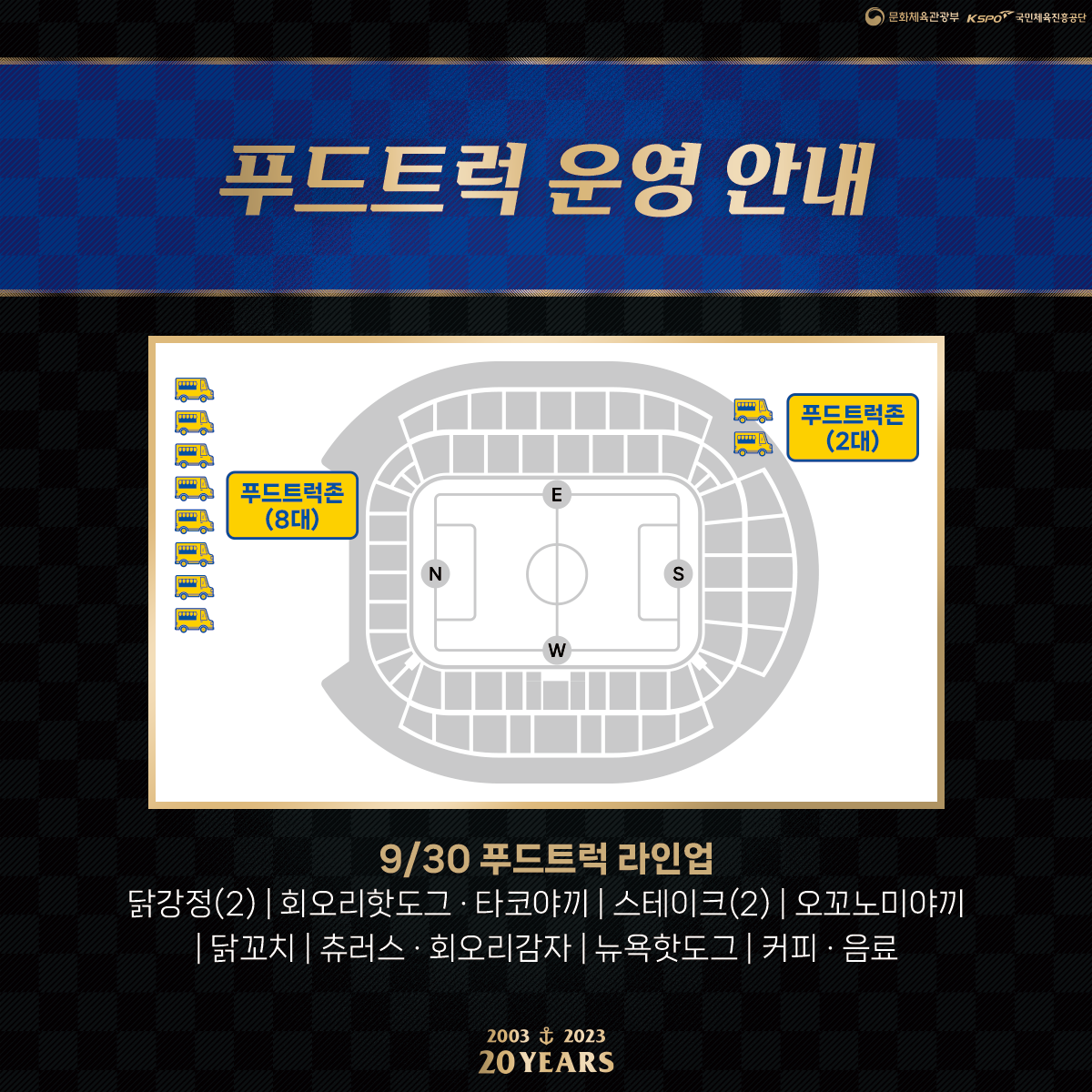 북측광장과 S석 게이트 옆 푸드트럭에서 다양한 음식을 판매합니다. 경기장에서도 맛있는 음식을 즐겨보세요!