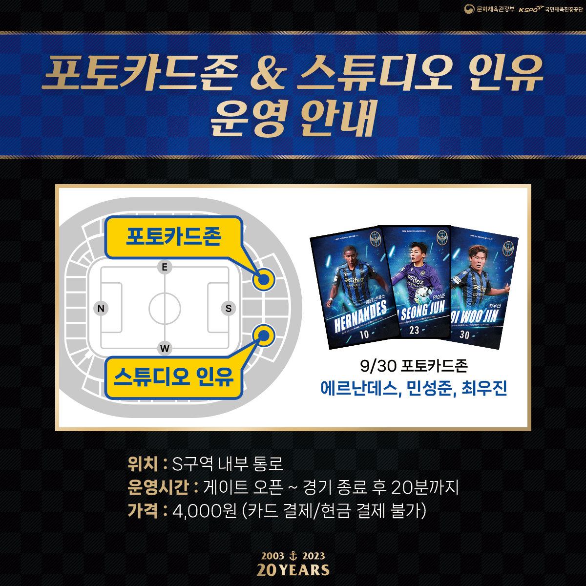 S석 통로에 설치된 포토카드존에서 '박현빈, 신진호, 이명주 선수'의 포토카드를 뽑아보세요!