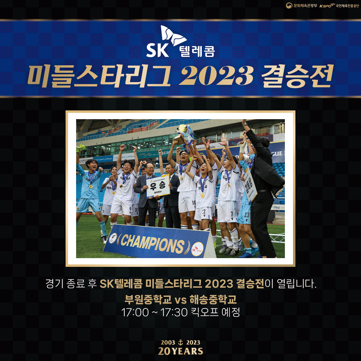 경기 종료 후 2023 SK텔레콤 미들스타리그 결승전이 인천축구전용경기장에서 진행됩니다.