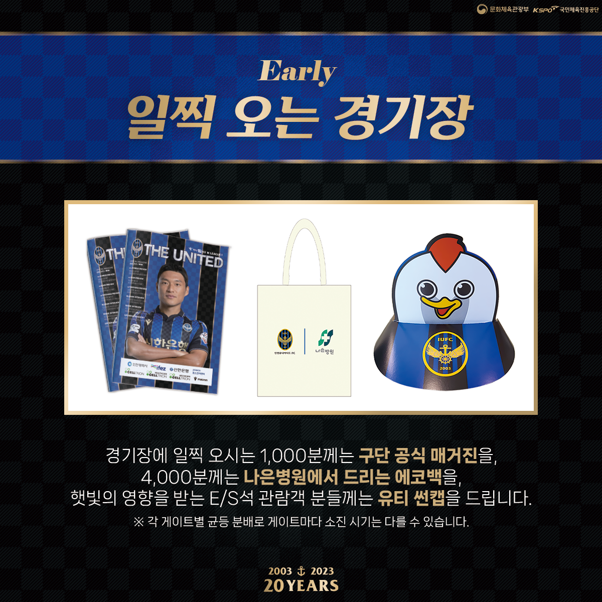 전북전, 일찍 오시는 관람객 1,000분께는 구단 공식 매거진 THE UNITED를, 4,000분께는 나은병원 에코백을 드립니다.