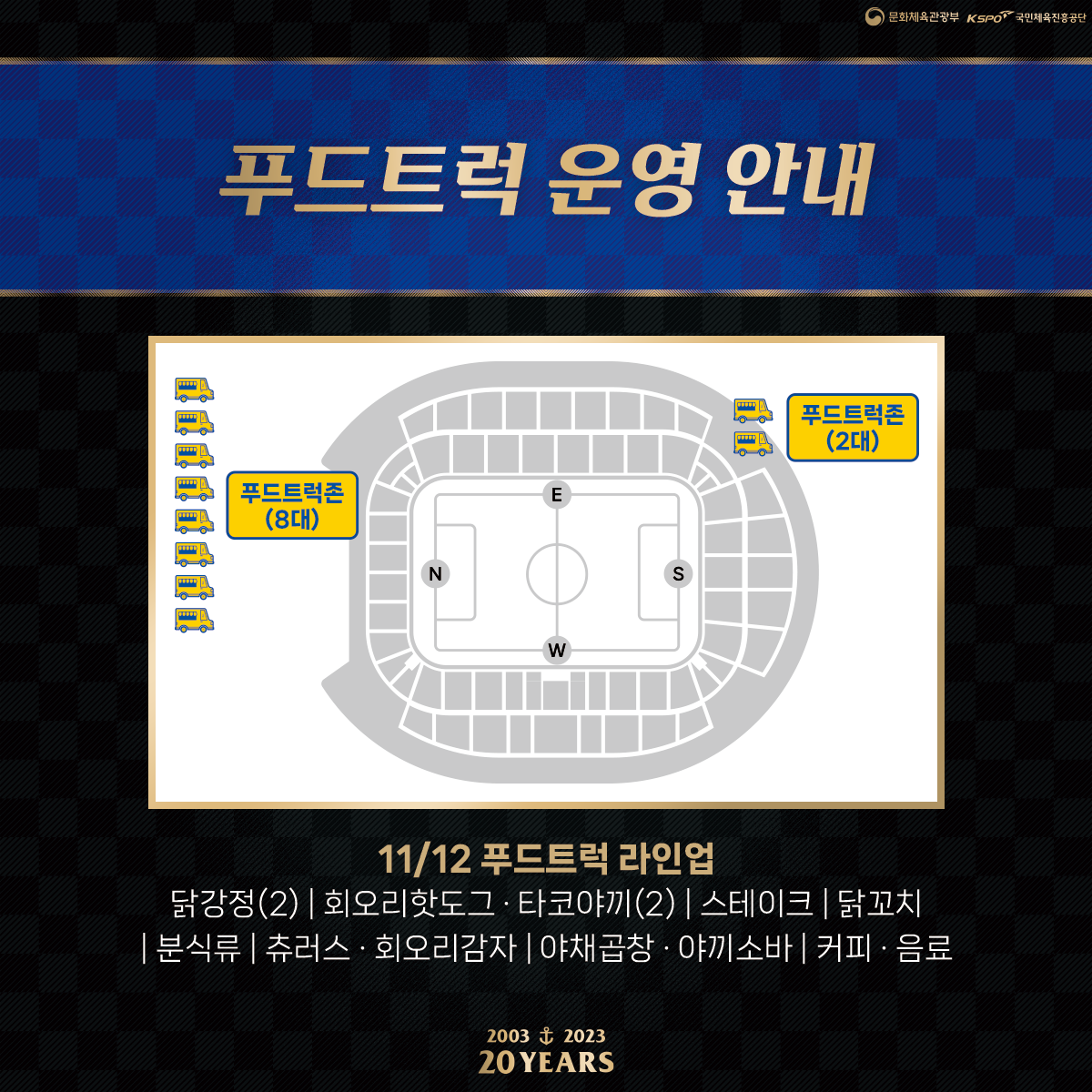 북측광장과 S석 게이트 옆 푸드트럭에서 다양한 음식을 판매합니다. 경기장에서도 맛있는 음식을 즐겨보세요!