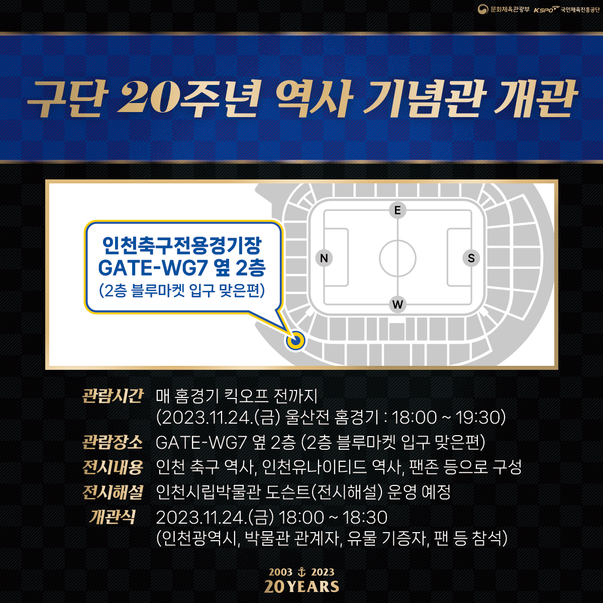 인천 축구 역사와 인천유나이티드의 역사, 팬존 등으로 구성된 20주년 역사 기념관 개관식에 많은 관심과 참석을 부탁드립니다.