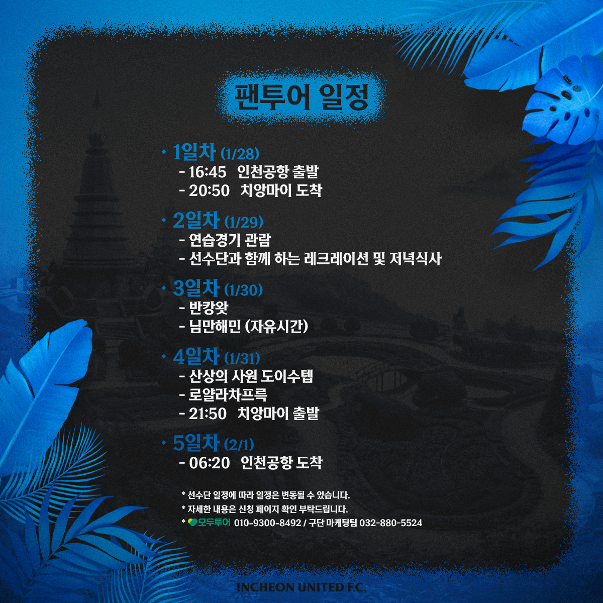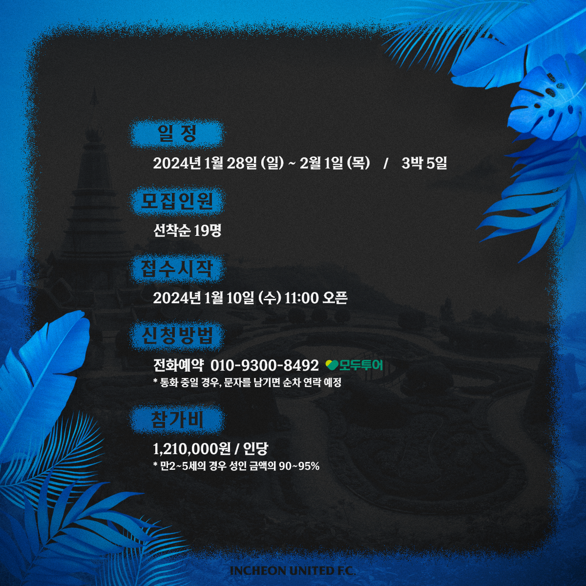 -문의전화 : 032-880-5524(인천유나이티드 마케팅팀) 또는 010-3755-8492(모두투어)