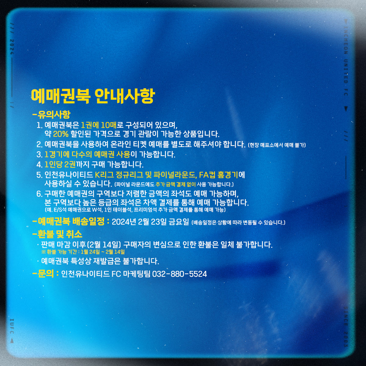 ⚓문의 : 구단 공식 홈페이지 우측 하단 채널톡 혹은 구단 마케팅팀(032-880-5524)