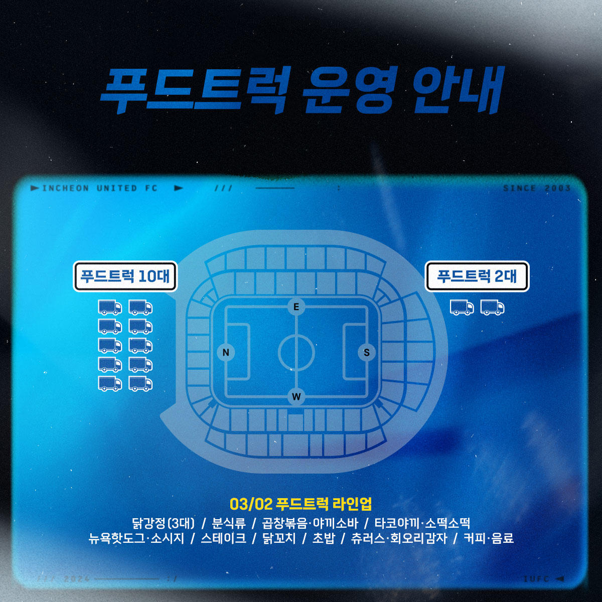 ※ 경기 시간(16:30~18:15)에는 매장 재정비를 위해 운영되지 않습니다. 단, 하프타임 시간에는 운영됩니다.▶ 티켓구매 : https://iufc.kr/ti▶ 고객센터 : 032-880-5500
