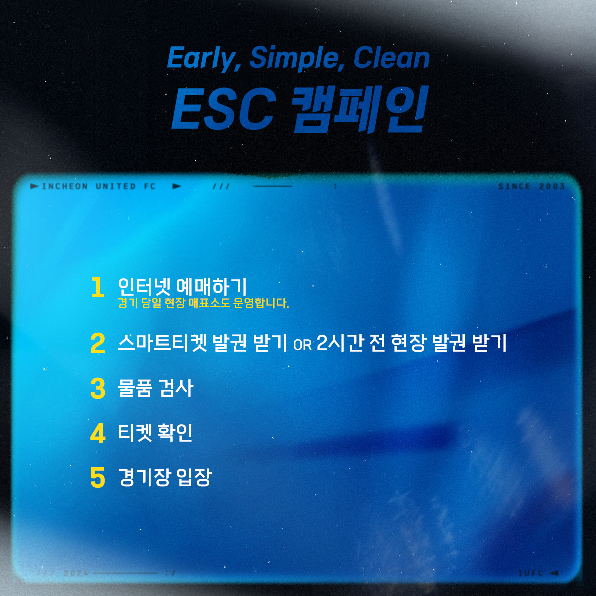 ※ 경기 시작 직전에 도착 시 전반전 경기 관람이 어려울 수도 있으니 경기 시작 전에 도착하여 주시길 권장해 드립니다.ESC 캠페인 (2) ‘SIMPLE’ 간편한 경기장