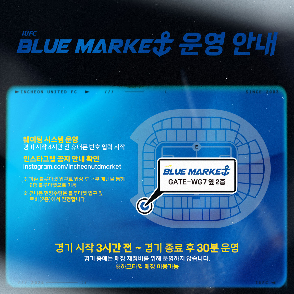 이번 홈경기 당일 오프라인 블루마켓 매장이 정상 운영됩니다.