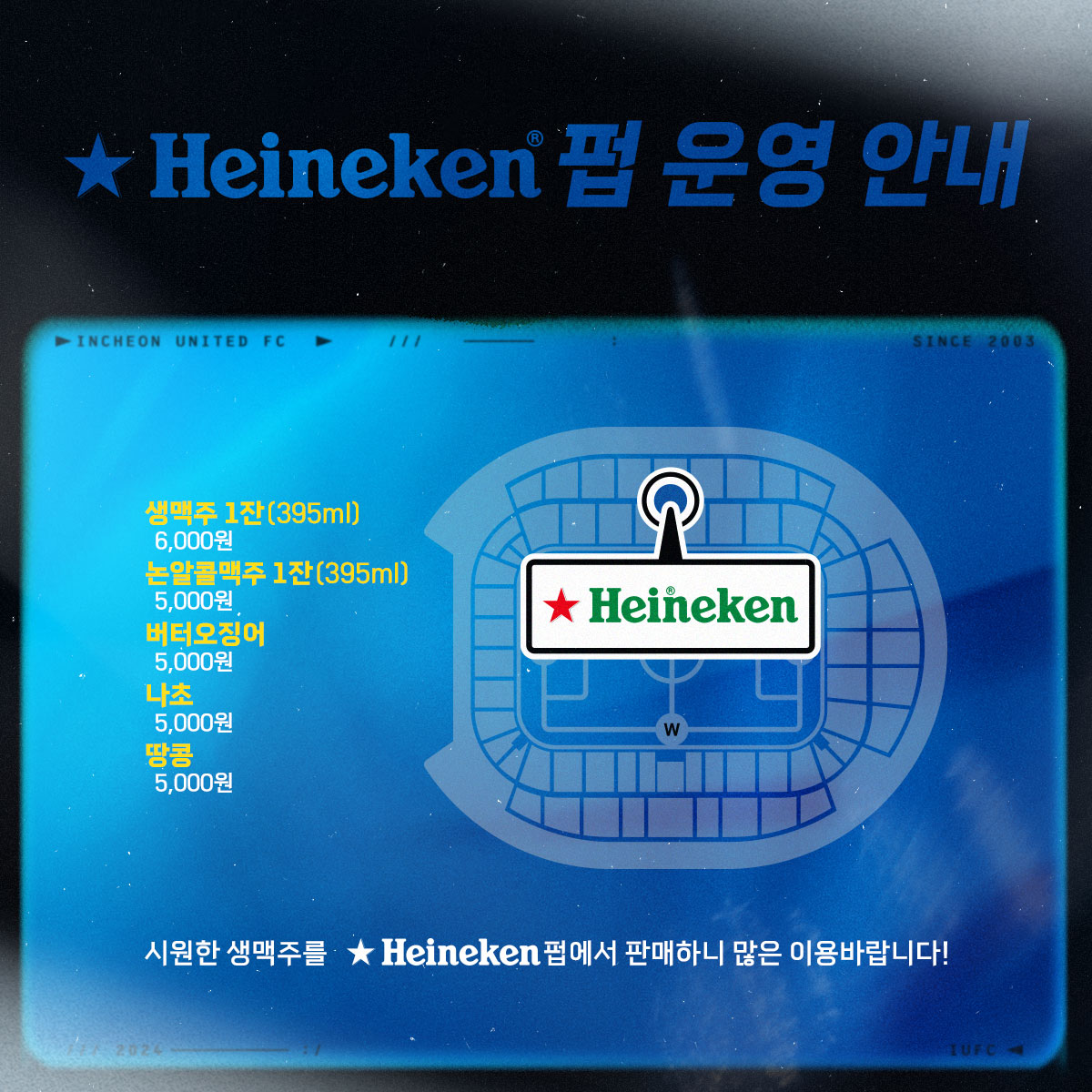 경기장 내 하이네켄펍에서 생맥주를 판매하오니 많은 이용바랍니다.