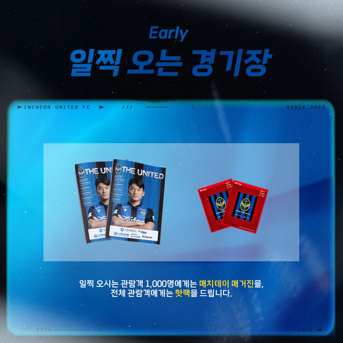 인천 시민, 그리고 팬 여러분! 토요일 오후 인천축구전용경기장에 찾아오셔서 다함께 2024시즌 개막전, 인천의 승리를 응원해주세요!