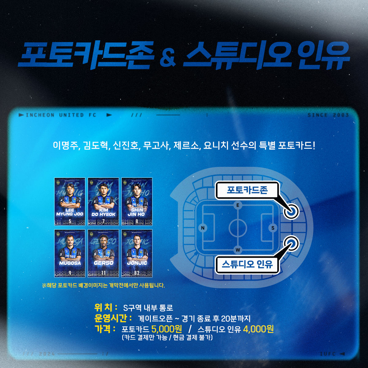 또한, 스튜디오 인유 사진부스에서 소중한 매치데이 추억도 남겨보세요!