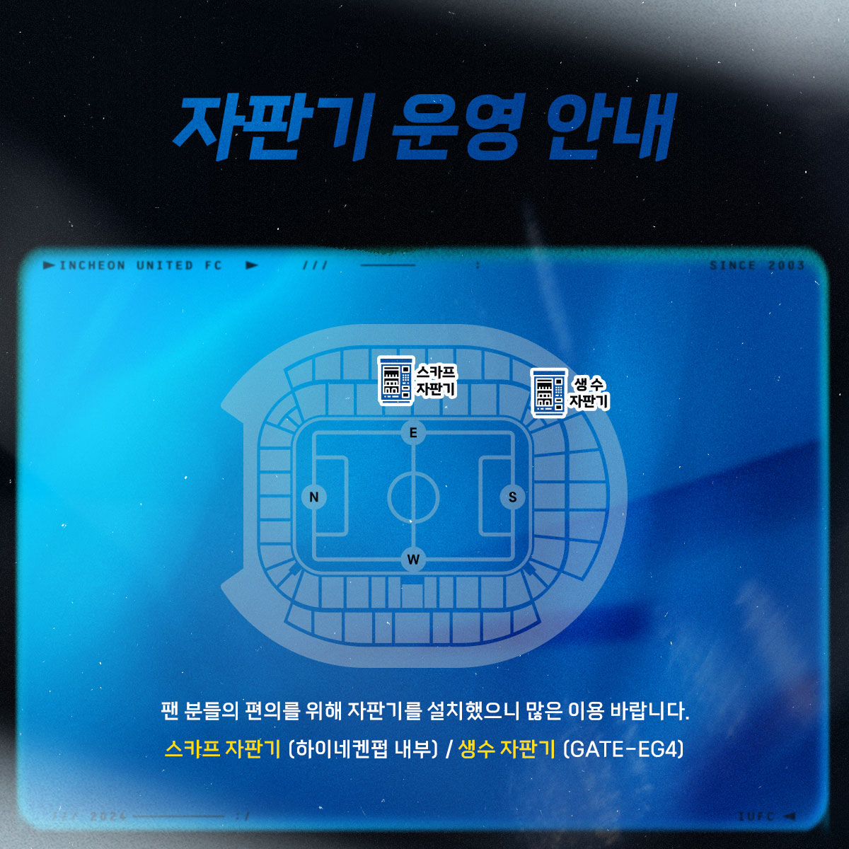팬 분들의 편의를 위해 하이네켄펍 내부와 EG4 게이트에 자판기를 설치했으니 많은 이용바랍니다.