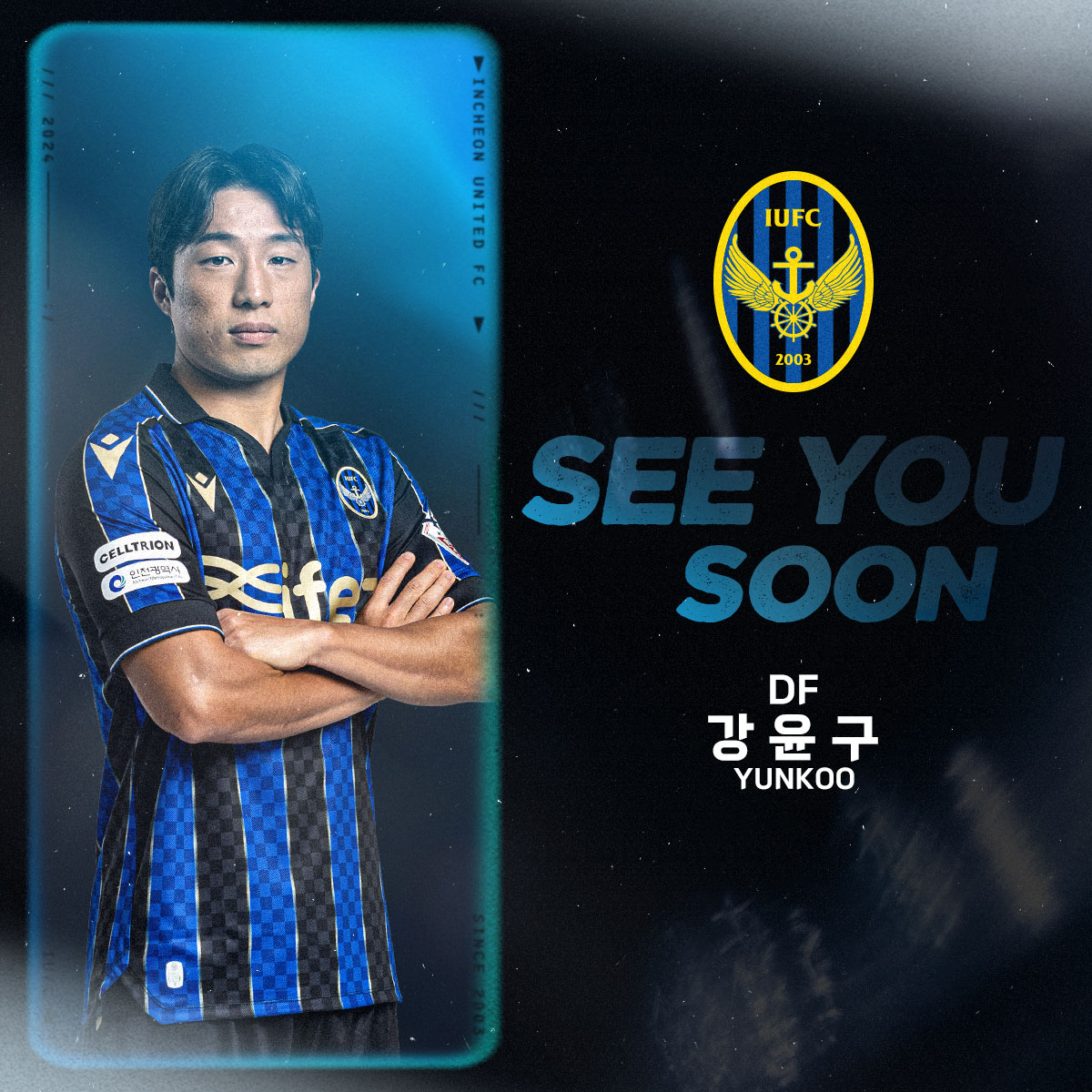 안녕하세요, 인천유나이티드입니다. 강윤구 선수가 오늘 자로(3/6) 사회복무요원에 소집되었습니다.