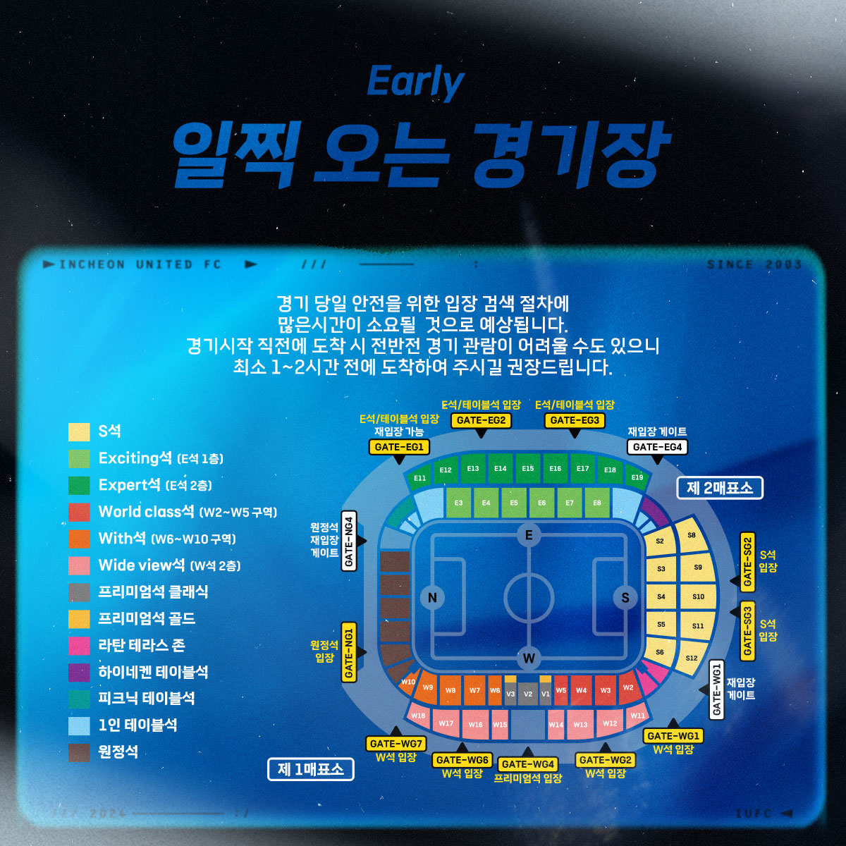 ※ 경기 당일 안전을 위한 입장 검색 절차에 많은 시간이 소요될 것으로 예상됩니다.