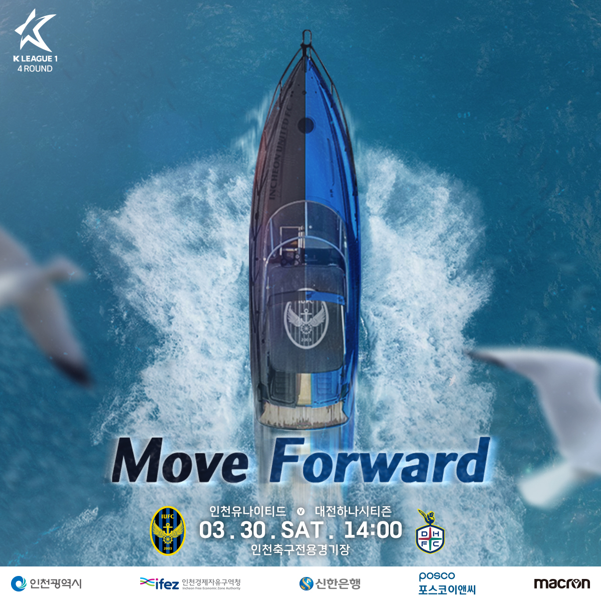 "승리를 위해, 전진하라 인천FC!"3월 30일 토요일 오후 2시, 인천유나이티드가 대전하나시티즌을 상대로 시즌 두 번째 홈경기를 펼칩니다.