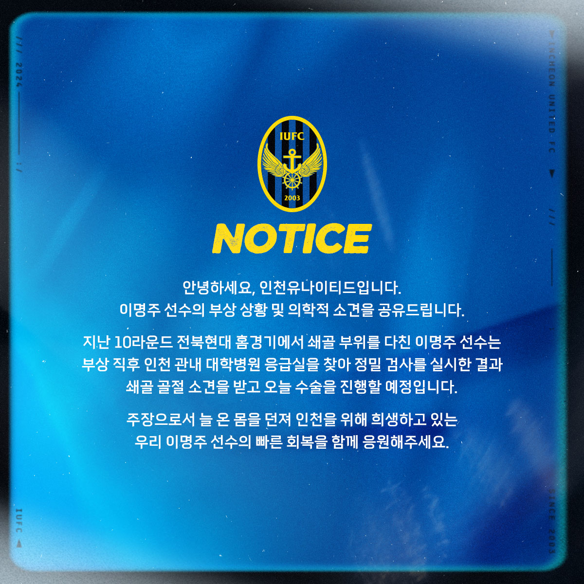 이명주 선수 부상 상황 및 의학적 소견 안내
