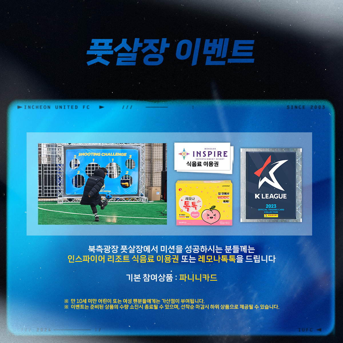 북측광장 풋살장 이벤트에서 미션을 도전하시는 모든 분들께 장안의 화제였던 K리그 파니니 카드를,