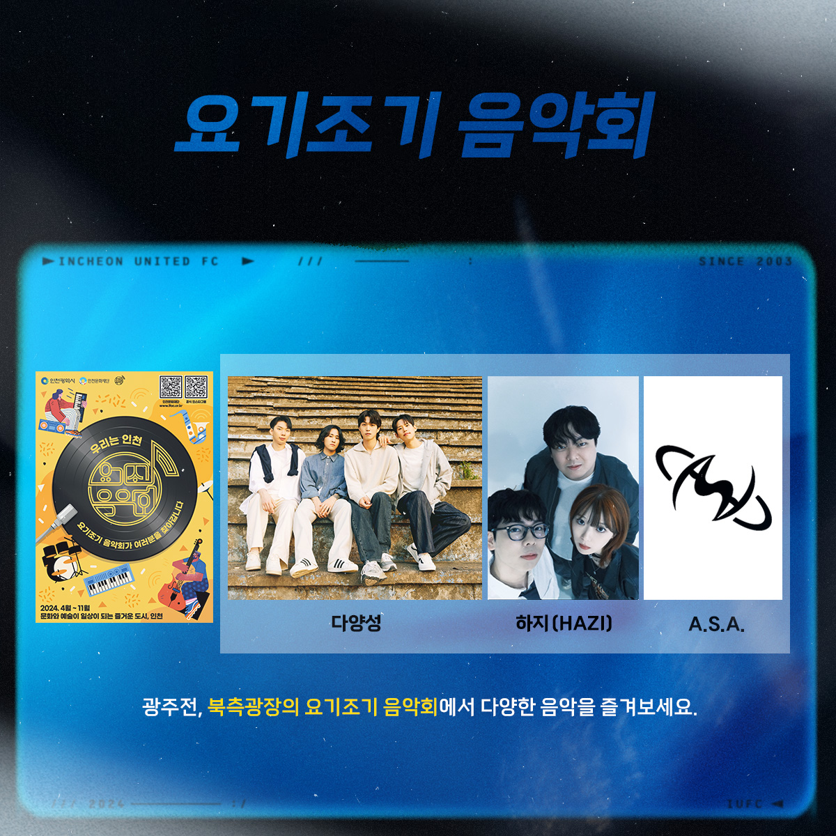 이번 홈 경기 북측광장에서는 '요기조기 음악회'가 열립니다.