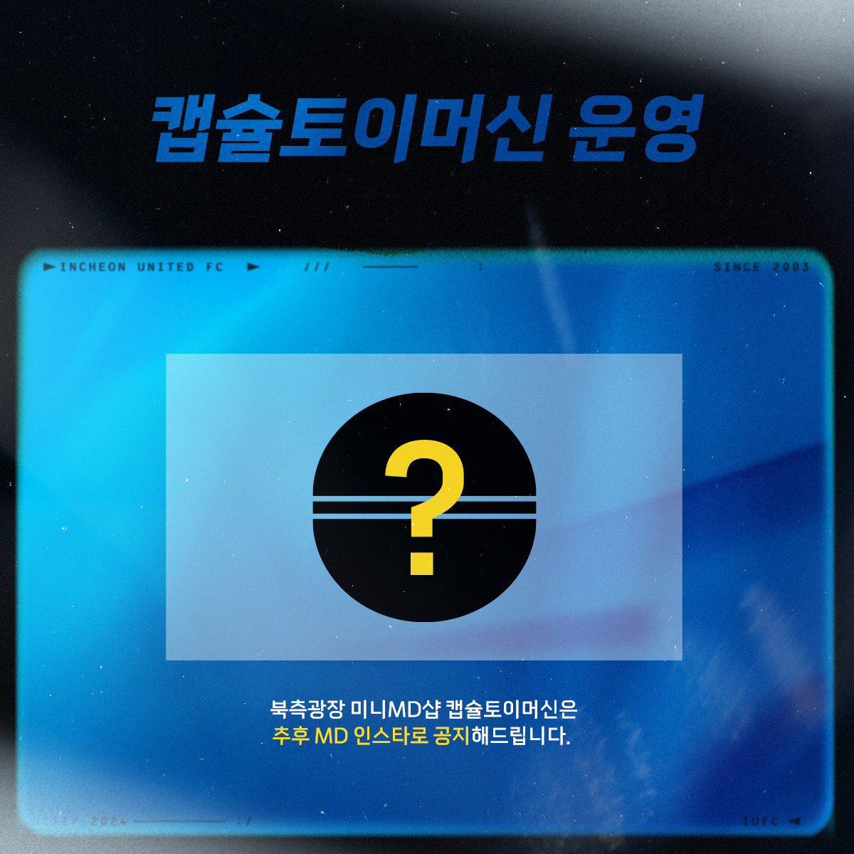 홈 경기 캡슐토이머신 상품 및 가격은 추후 구단 공식 MD 인스타그램 계정(@incheonutd_md)에서 공개될 예정이니 많은 관심 부탁드립니다!