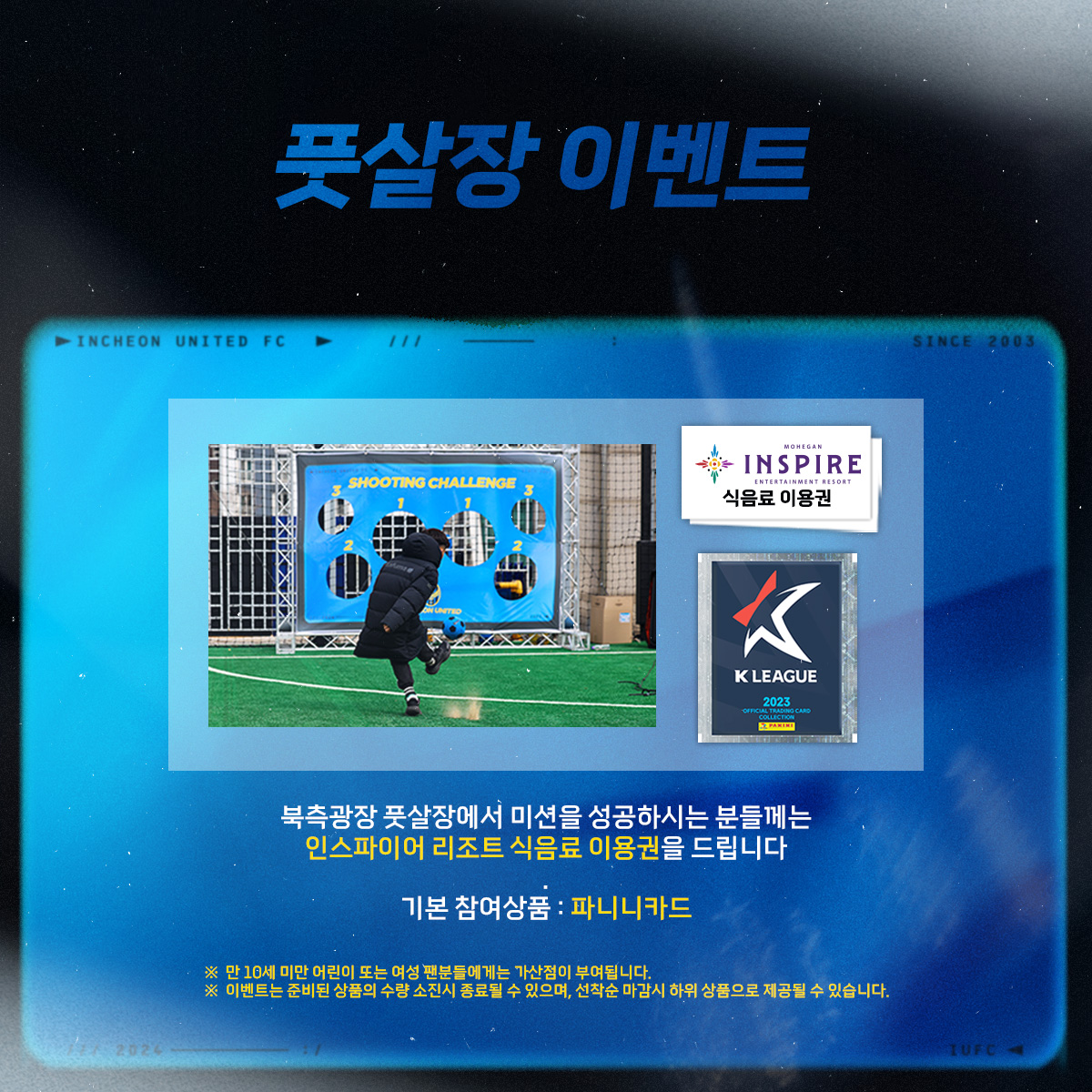 북측광장 풋살장 이벤트에서 미션을 도전하시는 모든 분들께 장안의 화제였던 K리그 파니니 카드를,
